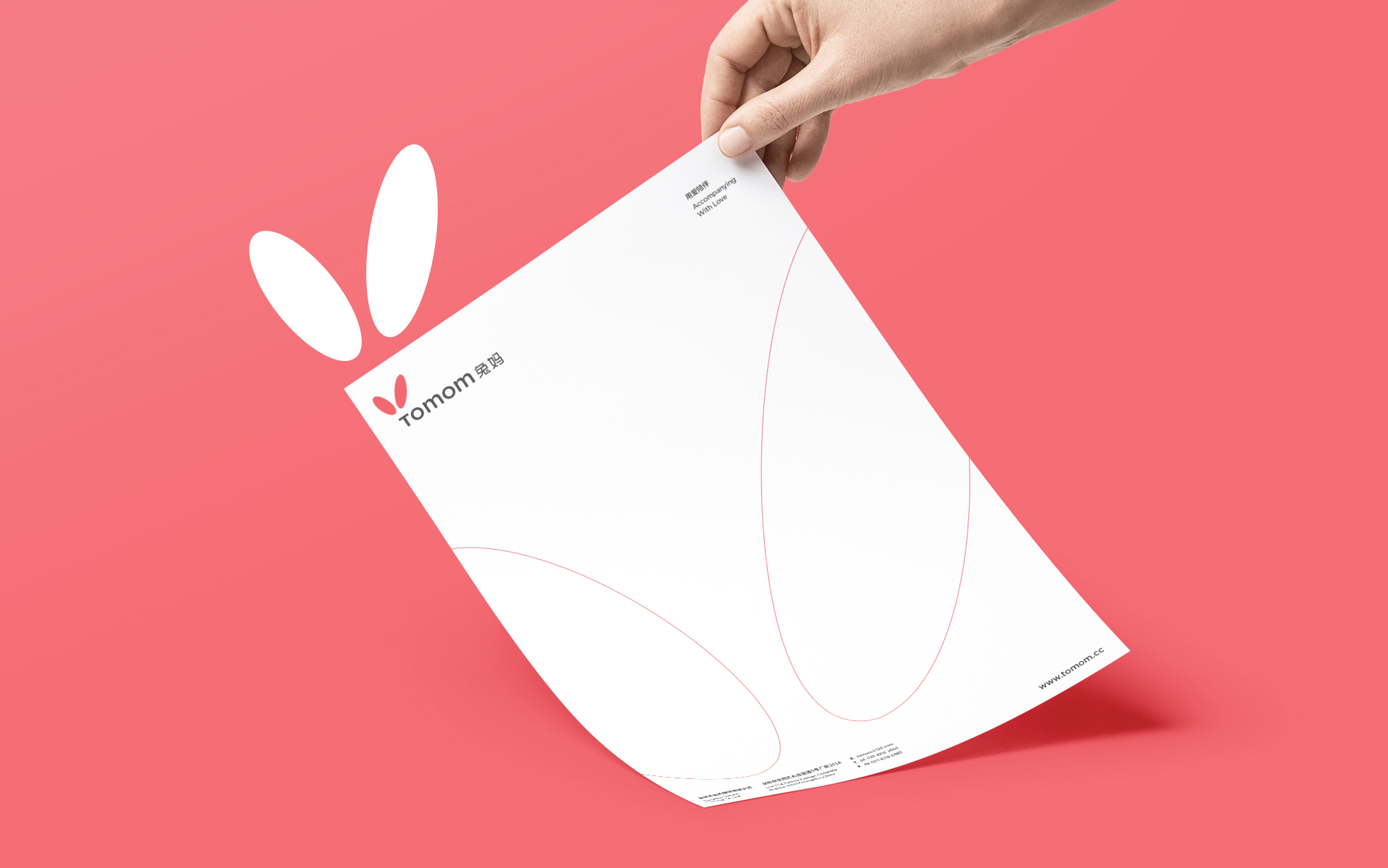 专属的标志无衬线英文字型,极具现代时尚国际;极简的椭圆形构成2个兔耳朵,字母“T”是兔子的嘴巴,一排“Tomom”字母是兔子的身体,呼应品牌名称“兔妈”,整体形成“Tomom兔妈”专属的超级识别符号,具有高识别性并具有亲和力,表达出兔妈对准妈妈们的细心关爱和陪伴:用爱陪伴,给你确定的温暖。超级符号,简化了人们对“Tomom兔妈”的认知、易于记忆与传播。